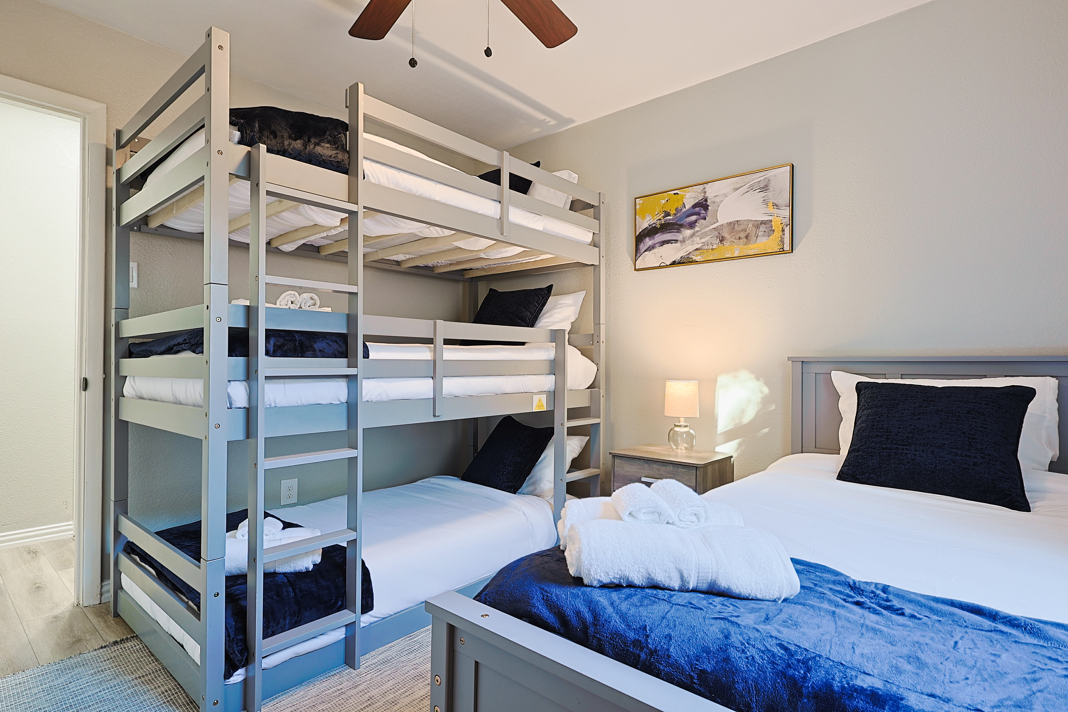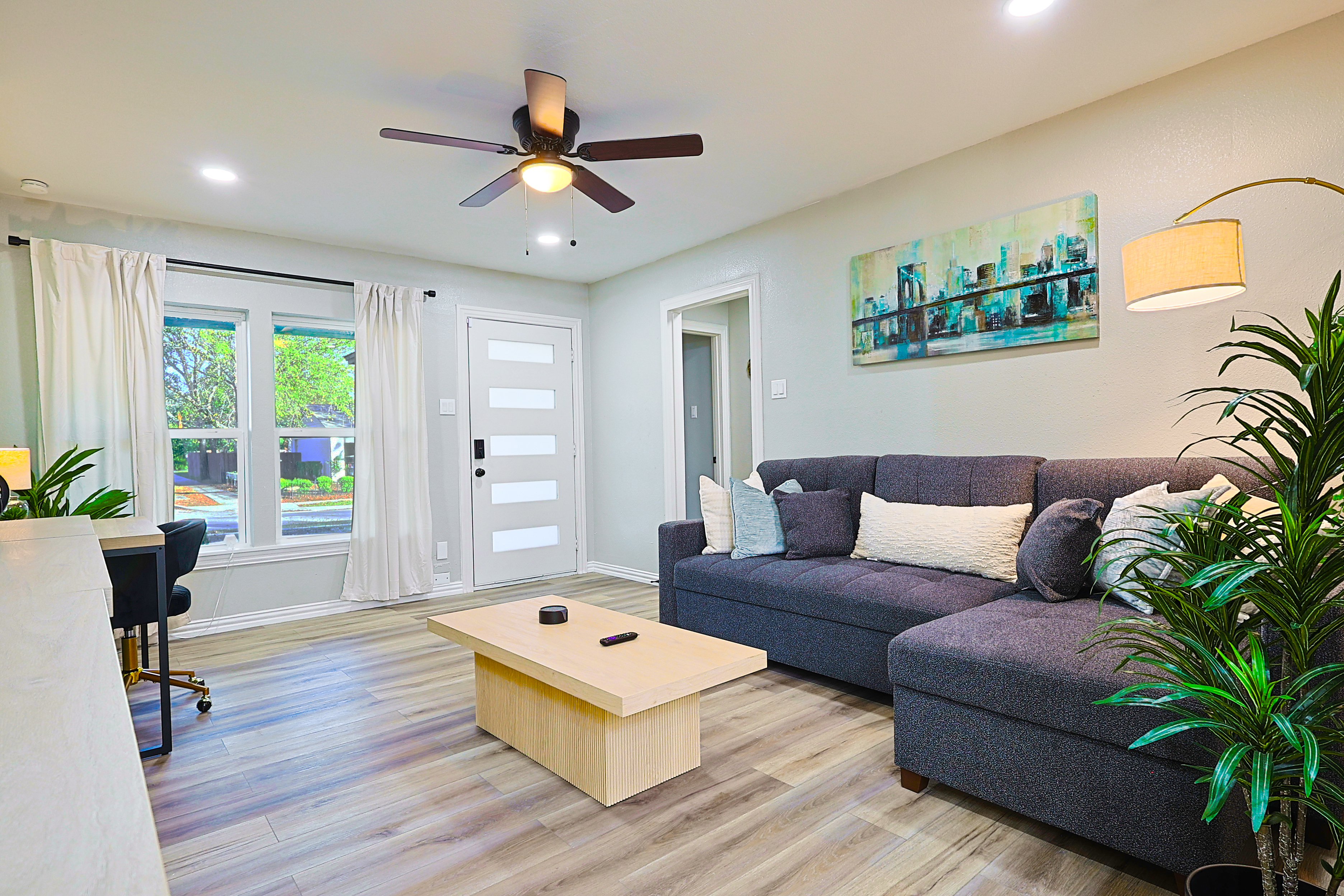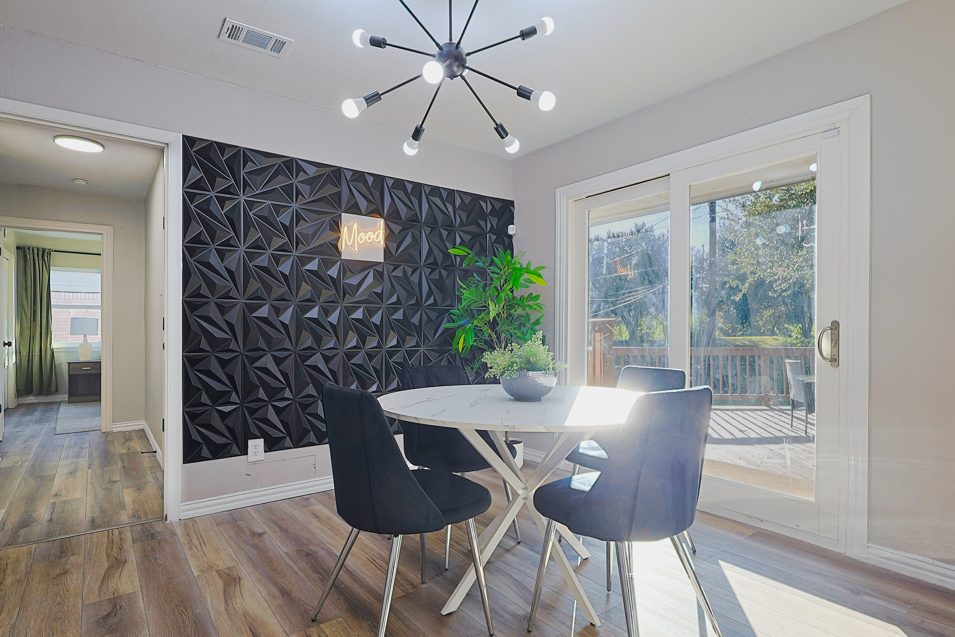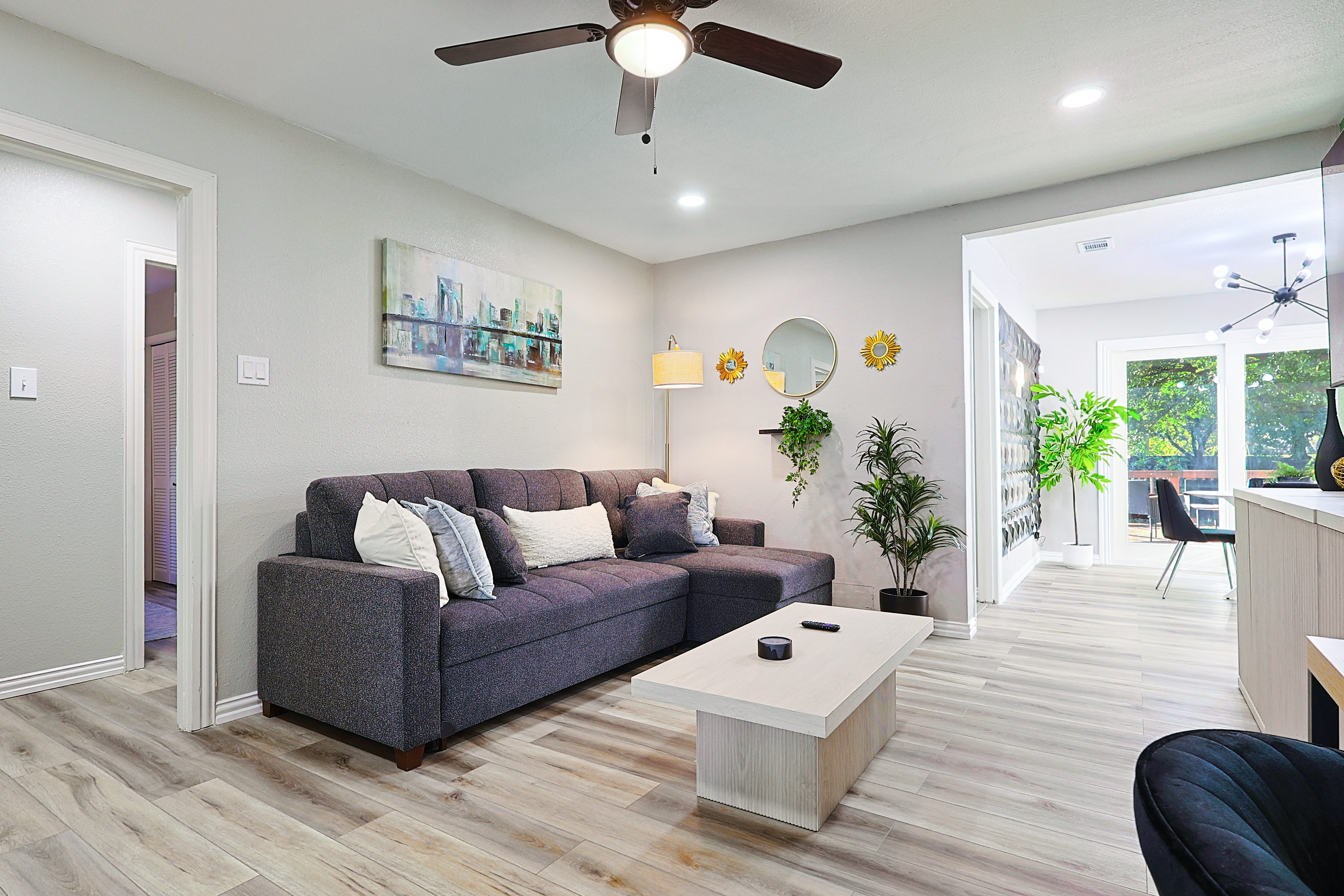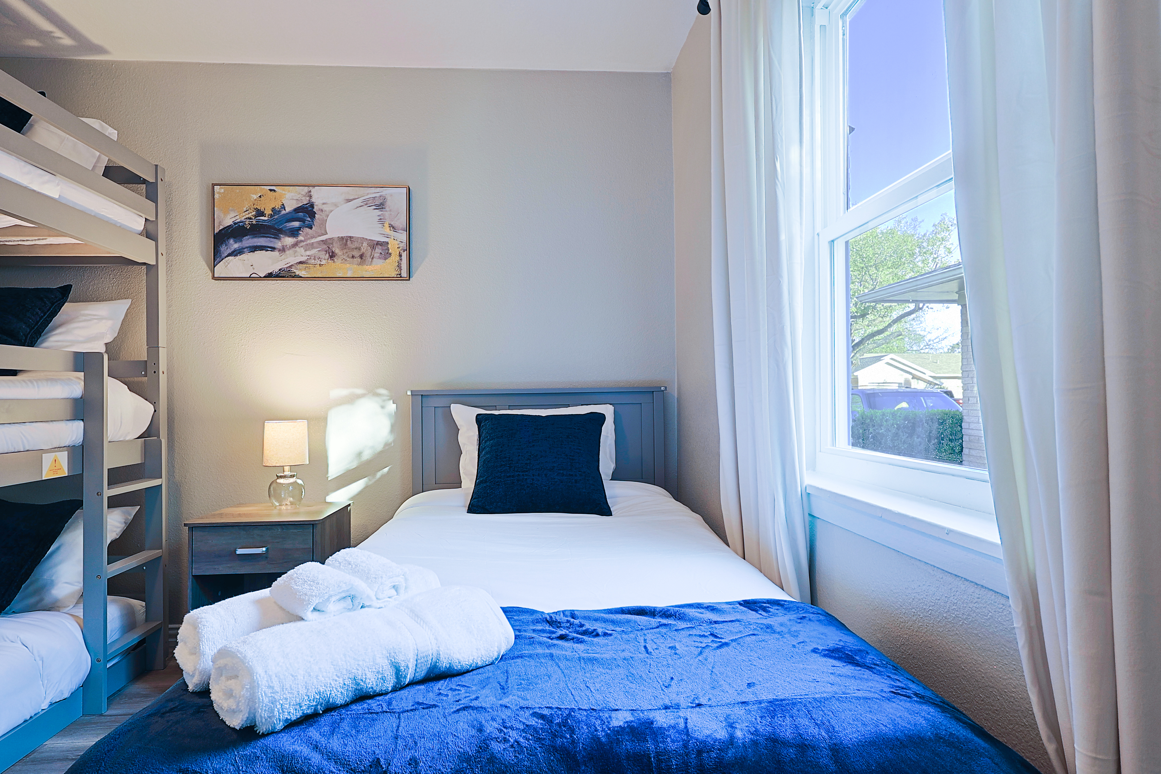 Richardson Park Retreat – Family-Friendly 3BR/2BA Home for 11 Guests Welcome to Richardson Park Retreat, your ideal family-friendly and group-friendly vacation rental in the Dallas-Richardson area! This spacious 3-bedroom, 2-bath home sleeps up to 11 guests and opens directly to a peaceful greenbelt and community park, perfect for morning walks, kids’ playtime, or relaxing outdoors. With a relaxing deck, open living areas, fast Wi-Fi, and a fully stocked kitchen, this home is perfect for family vacations, business trips, or group getaways. Enjoy the convenience of easy access to CityLine, UT Dallas, corporate offices, top restaurants, shopping, and popular Dallas attractions. Why Guests Love Richardson Park Retreat Sleeps up to 11 guests with versatile sleeping arrangements Direct access to a greenbelt + community park Outdoor deck for relaxing or entertaining Bright open-concept living and dining areas Fully equipped kitchen for cooking at home High-speed Wi-Fi and Smart TVs Quiet residential neighborhood with driveway parking Perfect for families, friends, and corporate travelers Sleeping Arrangements (Flexible for Families & Groups) Bedroom 1: Queen bed Bedroom 2: Twin bed + twin trundle Bedroom 3: Triple bunk + 2 twin beds Living Area: Pull-out sofa bed This setup ensures everyone has a comfortable space to rest, from kids to adults. Prime Richardson Location Minutes from CityLine & State Farm HQ Near UT Dallas and corporate offices Close to shopping, restaurants, cafés, and groceries Access to parks, nature trails, and family attractions Easy travel via US-75 and PGBT to Dallas/Fort Worth metro area Perfect For Family vacations Multi-family trips Corporate stays or team retreats Groups visiting the Dallas-Fort Worth area