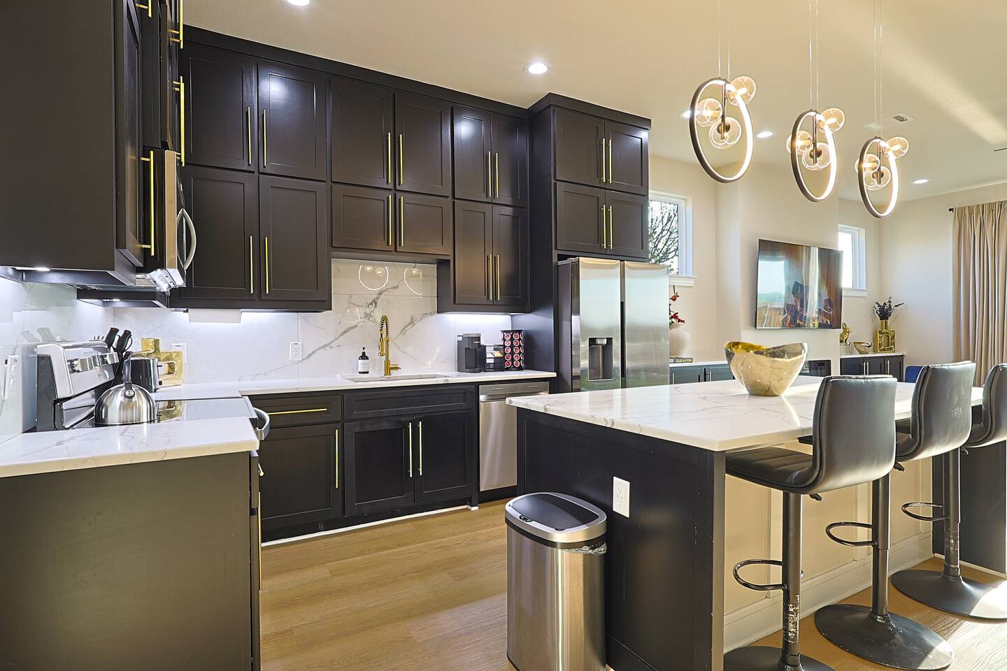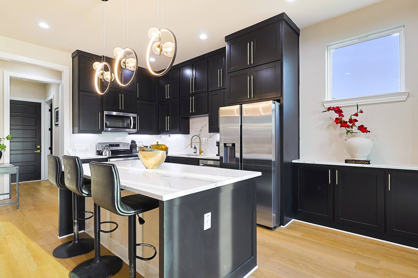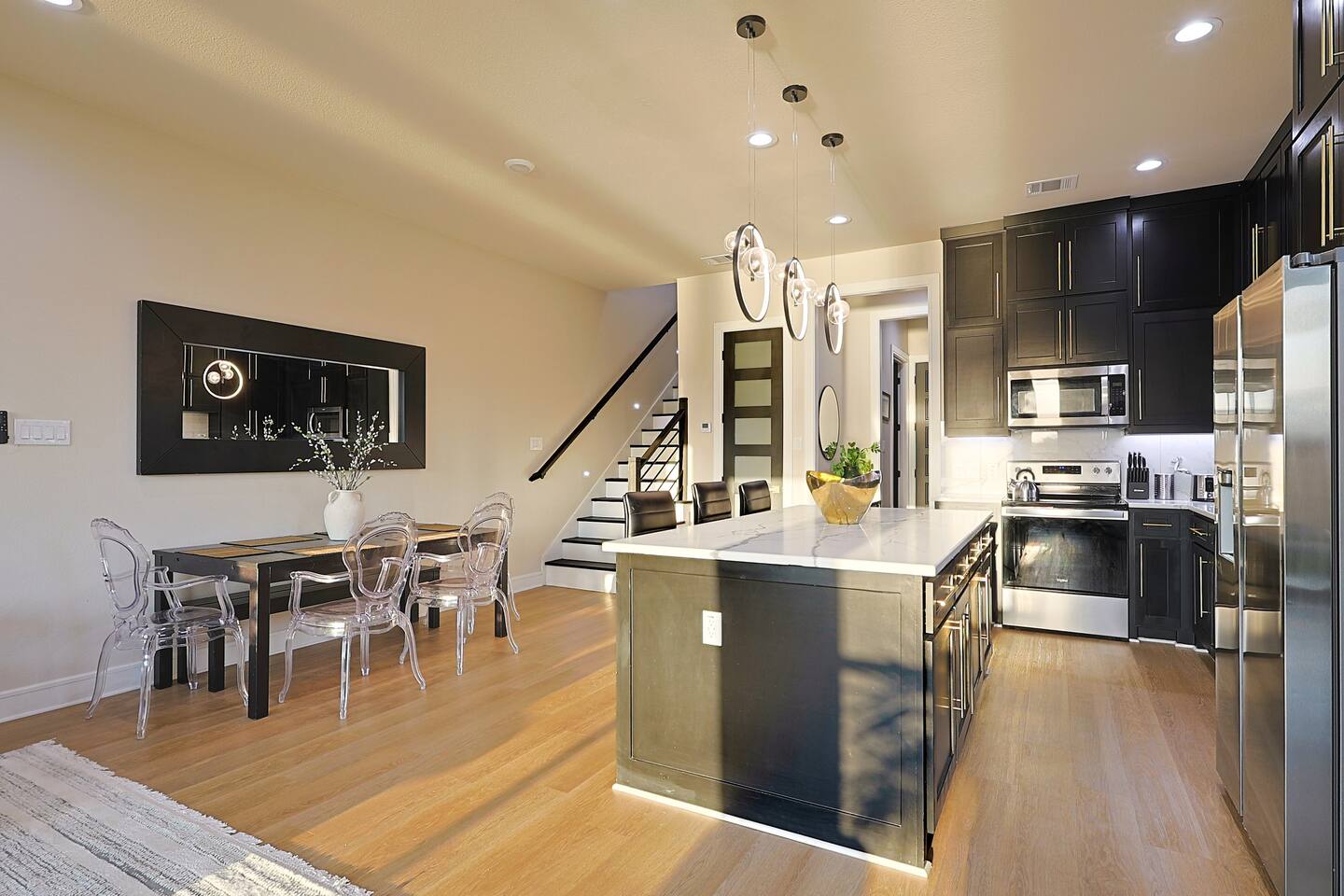 This isn’t just a place to stay—it’s an experience. Thoughtfully curated with modern elegance, the home features high ceilings, expansive windows, and premium finishes that create a bright, open, and sophisticated atmosphere. The main living area is perfect for entertaining or relaxing in style, flowing seamlessly into a fully equipped chef’s kitchen with sleek cabinetry, upscale appliances, and plenty of space to gather. Whether you're enjoying a quiet night in or hosting friends, the layout makes it effortless. With three levels of living, guests can spread out and enjoy both privacy and connection. Each bedroom is designed as its own retreat—featuring comfortable, hotel-quality bedding, stylish décor, and a calming ambiance that helps you unwind after a day in the city. DESIGNED FOR COMFORT + FUNCTION • Multiple living spaces across 3 floors • Open-concept design with natural light throughout • High-end furnishings and curated décor • Spacious bedrooms with premium linens • Ideal layout for groups, families, and longer stays Every detail has been considered to ensure your stay feels seamless, comfortable, and elevated. UNBEATABLE LOCATION Location is everything—and this home delivers. You’re just minutes from Downtown Dallas, giving you quick access to the city’s best nightlife, business hubs, and attractions. Right nearby, Trinity Groves is known for its dynamic food scene, offering everything from upscale dining to local favorites and rooftop experiences. Step outside and explore Trinity Groves Park, where you can take in scenic skyline views, walk along the trails, or relax in one of Dallas’ most picturesque green spaces—all with views of the iconic Margaret Hunt Hill Bridge. You’re also a short drive from top shopping destinations, entertainment venues, and cultural hotspots, making it easy to experience the best of Dallas without the hassle. PERFECT FOR ANY OCCASION • Weekend getaways • Family vacations • Group trips & celebrations • Business & corporate travel • Extended stays THE VIBE Modern. Clean. Elevated. Comfortable. This home strikes the perfect balance between luxury and livability—giving you a space that feels both high-end and welcoming. WHY THIS HOME STANDS OUT • Prime location in one of Dallas’ hottest neighborhoods • Minutes from Downtown without the noise • Spacious 3-story layout for ultimate flexibility • Designer touches throughout for a luxury feel • Close to dining, parks, shopping, and entertainment If you’re looking for a stay that feels upscale, centrally located, and effortlessly comfortable—this is it. Book now and experience West Dallas living at its finest.
