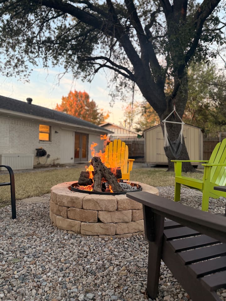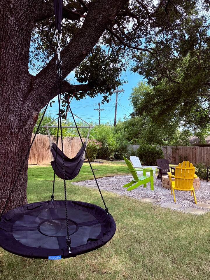 Welcome to your spacious Dallas getaway! This centrally located home is thoughtfully designed for families, groups, and travelers seeking comfort, entertainment, and convenience. The open-concept living room, with its chic décor and smart TV, is the perfect place to relax. Prepare delicious meals in the fully stocked chef’s kitchen, which features stylish green cabinets, modern appliances, and a large island. The home includes four bedrooms with plush bedding and two full bathrooms stocked with fresh towels, ensuring a comfortable stay for your entire group. KEY FEATURES: * 4 comfortable bedrooms with plush bedding * 2 full bathrooms with fresh towels * Fully equipped chef's kitchen * Open-concept living room with Smart TV * Private backyard oasis ENTERTAINMENT & WORK: * Pool table * Selection of board games * Dedicated workspace with desk * High-speed internet FAMILY-FRIENDLY AMENITIES: * Crib available (upon request) * Pack ’n Play * Neighborhood playground just 3-minute walk OUTDOOR OASIS: * Private, fully fenced backyard w/ mature trees * Fire pit for cool evenings * BBQ grill for outdoor cooking * Relaxing swing and hammock * Punching bag * Covered area for pets