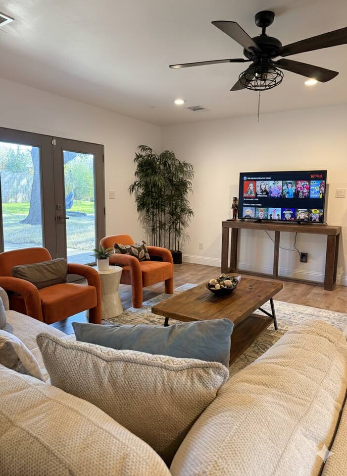 🚀 High-speed internet for remote work, streaming, and video calls. OUTDOOR SECURITY CAMERA: To ensure security, we have a door camera that records 24/7. For your privacy, no cameras are located inside the house. SERVICE DOG POLICY: In accordance with Airbnb’s Terms of Service, no dogs, including service animals, may be left unattended in the home without the host’s consent. We do not permit any dogs to be left alone at any time. By booking this property, you explicitly agree that the host or their representative may enter the home without further notice to remove any unattended dog and surrender it to the appropriate authorities as an abandoned animal. Additionally, if a dog is left alone in the home, your reservation will be canceled immediately without a refund. For your convenience, we can provide a list of local doggy daycares and pet sitters to assist you during your stay. HOUSE RULE VIOLATIONS: Violating house rules may lead to reservation cancellation without a refund. NO PARTIES ($1000 PENALTY) NO EVENTS ($1000 PENALTY) NO SMOKING ($1000 PENALTY)